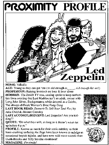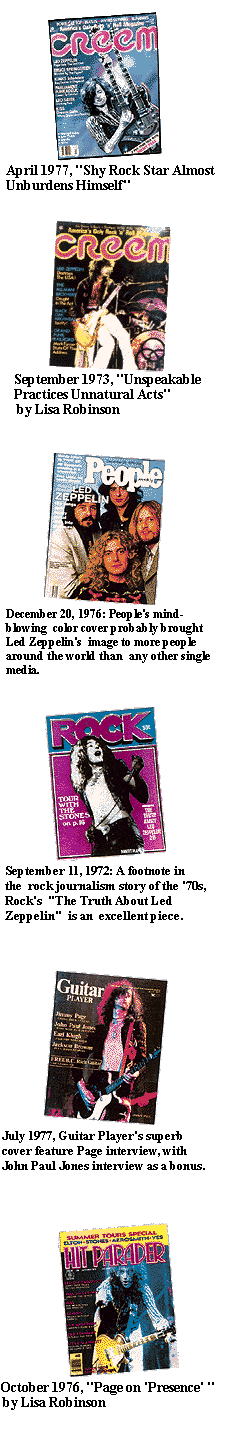 (excerpted from Proximity #28 - this section is the introduction to the piece, the actual article contains brief individual histories of each magazine and listings of all the significant Zeppelin articles and cover appearances, with illustrations of most of the covers.)