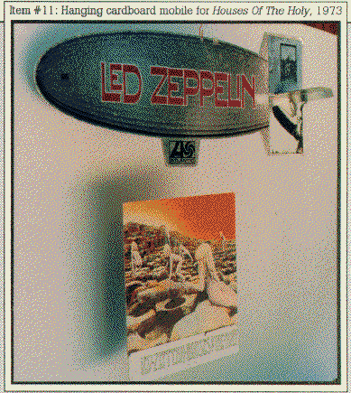 In 1973, when I was a tenacious 16-year old Zeppelin fanatic, my local strip-mall record store had the hanging silver Zeppelin promo mobile for Houses Of The Holy up in the store (item # 11). For six months, with clockwork-like regularity, I stopped into that store twice a week and reminded the same poor clerk that I wanted that display when it came down. What started as a minor annoyance to him became a running joke, and then became an annoyance again when he eventually realized that I wasn't going to give up!